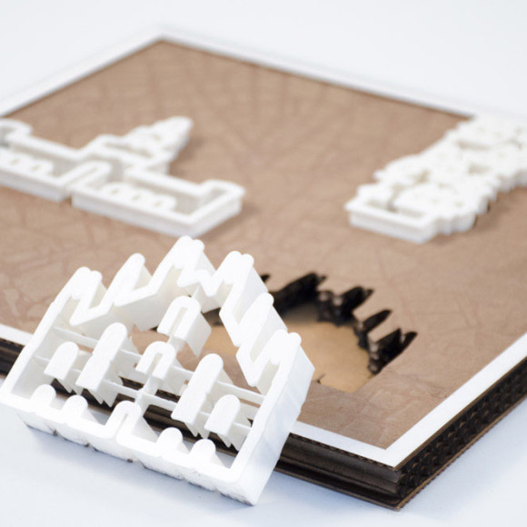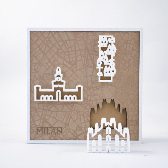 Gli stampi dei biscotti in acciaio danno forma ai più noti monumenti delle capitali europee, che diventano icone fuori scala all’interno di un quadretto-contenitore in cartone illustrato con la planimetria urbana. Sono elementi riconoscibili di una mappa mentale probabilmente collettiva, momenti condivisi di incontro, orientamento e identità.